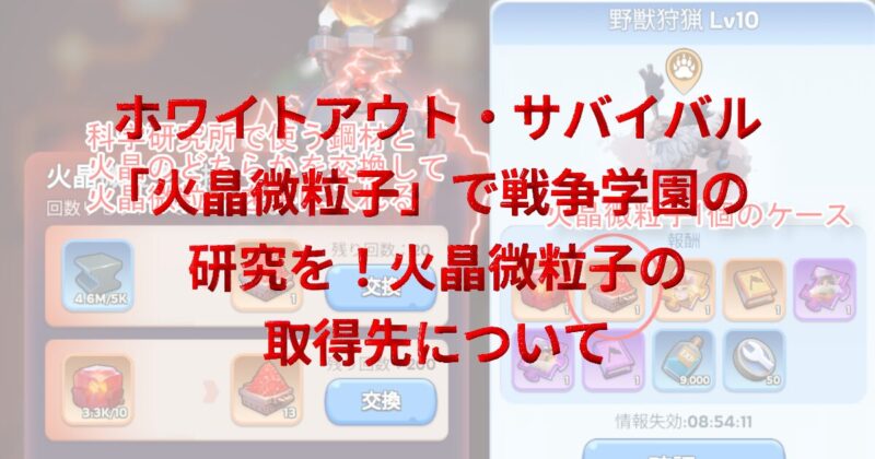火晶を手に入れる為には簡単で、かつ結構頻発に実施される「烈火と牙」イベントにおいても火晶微粒子を交換報酬として受け取る事が可能です。詳しくは下のページにて紹介していますのでそちらの方を参考にしてください。なお結果だけ記述すると、火晶微粒子はこのイベント中に40個まで手に入れる事が可能です。