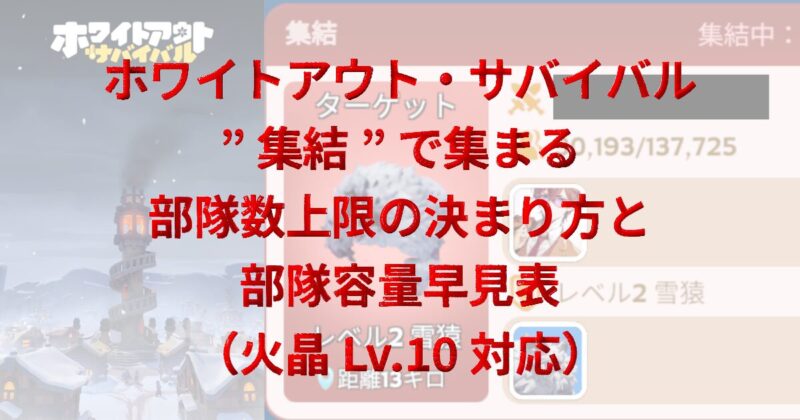 けれど集結するに当たって部隊数の上限が低いためにうまく倒せない、なんて人はいるのではないでしょうか?そのためには集結で集められる人数がどこから影響を受けて、どう計算されているのかを知らなければなりません。今回は”集結”の人数上限の決まり方をご紹介します。