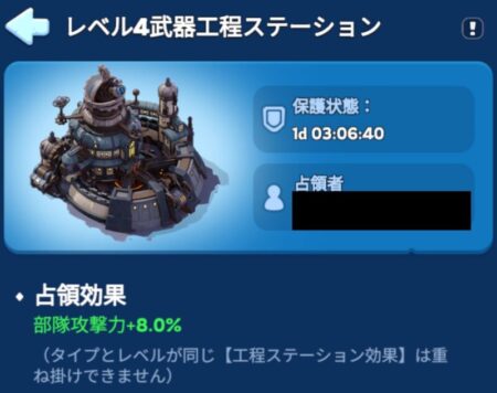 | レベル4防御工程ステーション | 部隊防御力+8.0% |